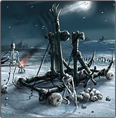 The army itself is a pitiless horde, driven by pitiless masters. Those that live are twisted into cruel mockeries of their former selves; those that die are resurrected in service as mindless, fearless rank-and-file soldiers, and the enemy is not spared the same treatment when killed or captured. The Legion is truly terrifying on the battlefield; with ever-growing ranks of the undead filling the front lines, terrifying monstrosities acting in support, and wicked priests wielding death magic, bringing low even the most mighty heroes with visions of horror and, in the end, utter destruction of the body and the soul- at least, those portions of body and soul that are not put directly to use.
